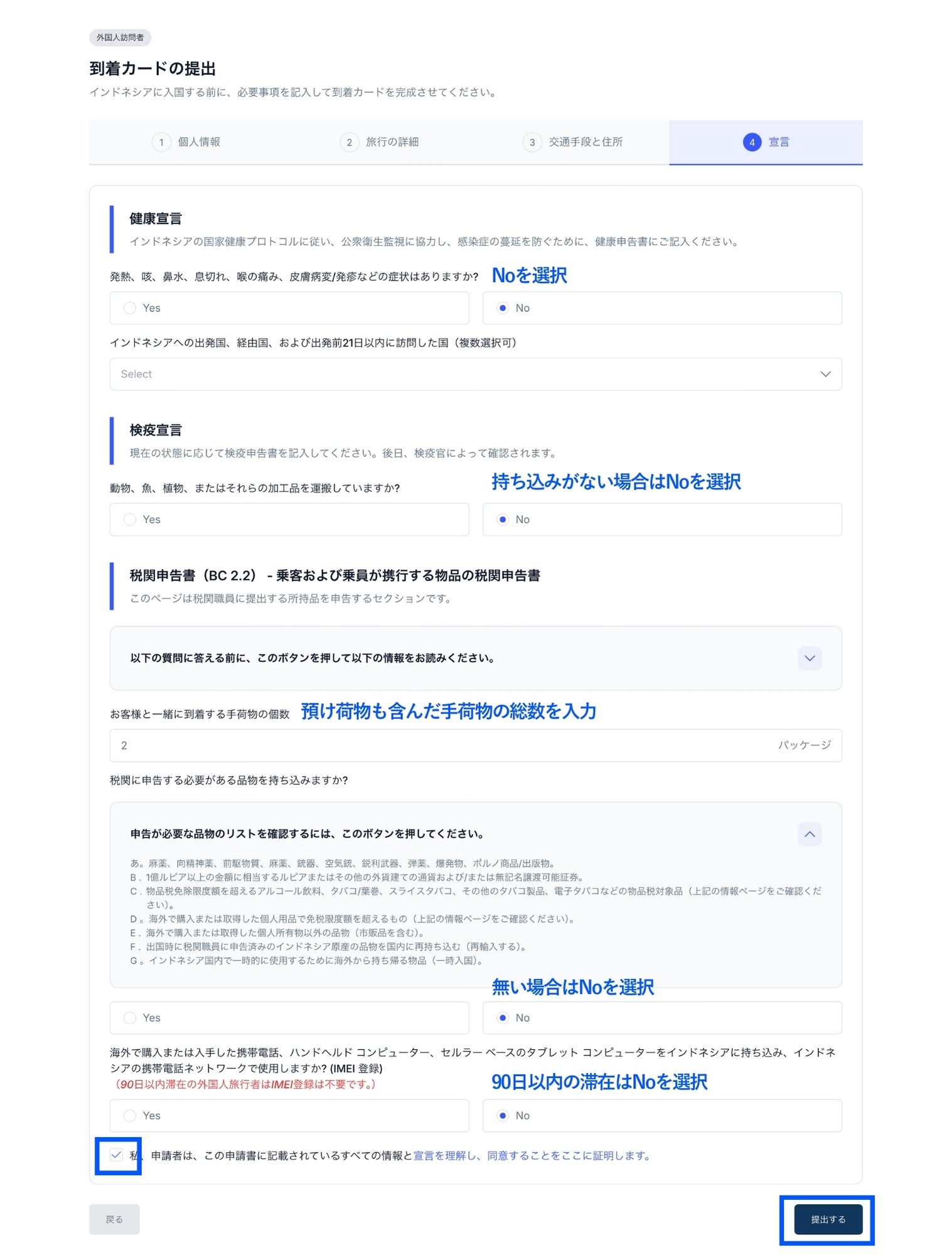 ・インドネシア入国に必要な 税関申告・健康申告・滞在情報を一括登録するデジタル到着カード