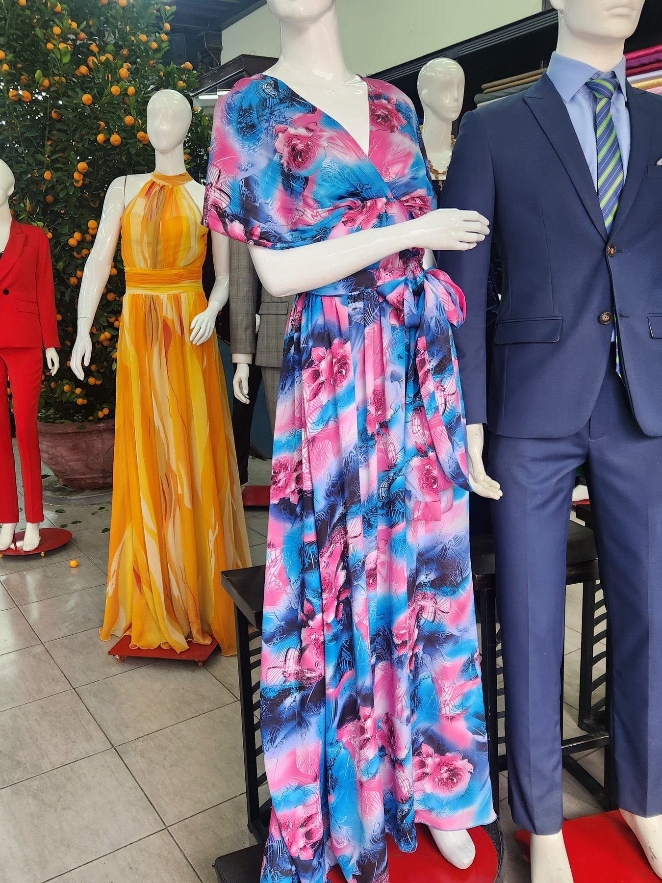 ドレスやジャケットを数点オーダーしても、驚くほどリーズナブル。花柄生地のセンスも秀逸で、リゾート感ある一着が叶います。