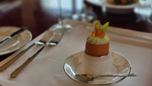 キャビアを添えた、控えめなアミューズ